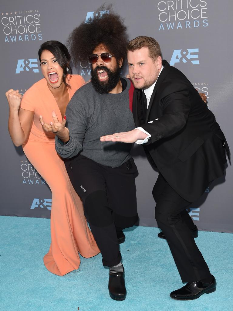 Gina Rodriguez, Reggie Watts i James Corden (Foto: AFP)