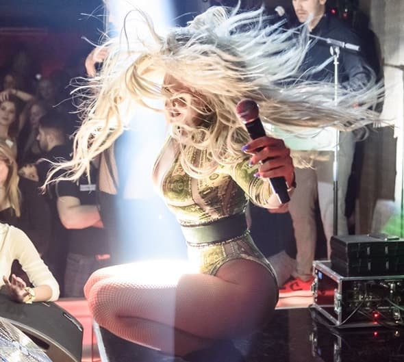 A u samom klubu – lom! Karleuša je po običaju pokazala zbog čega je neprikosnovena u svom poslu, pevajući i igrajući u ritmu svojih najvećih hitova više od dva sata. Odevena u efektni zlatni plašt i minimalni bodi sa printom dolara (delo najpoznatijeg hrvatskog dizajnera Zigmana), JK je izazvala delirijum u publici. Svetlosni i scenski efekti, koreografije, kostimi, laseri, sve je to bio deo spektakla od sinoć.