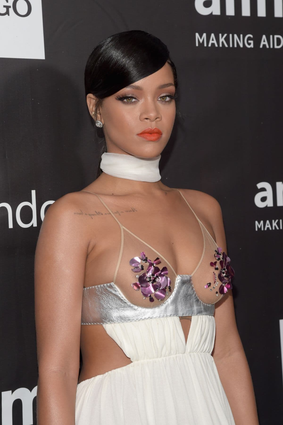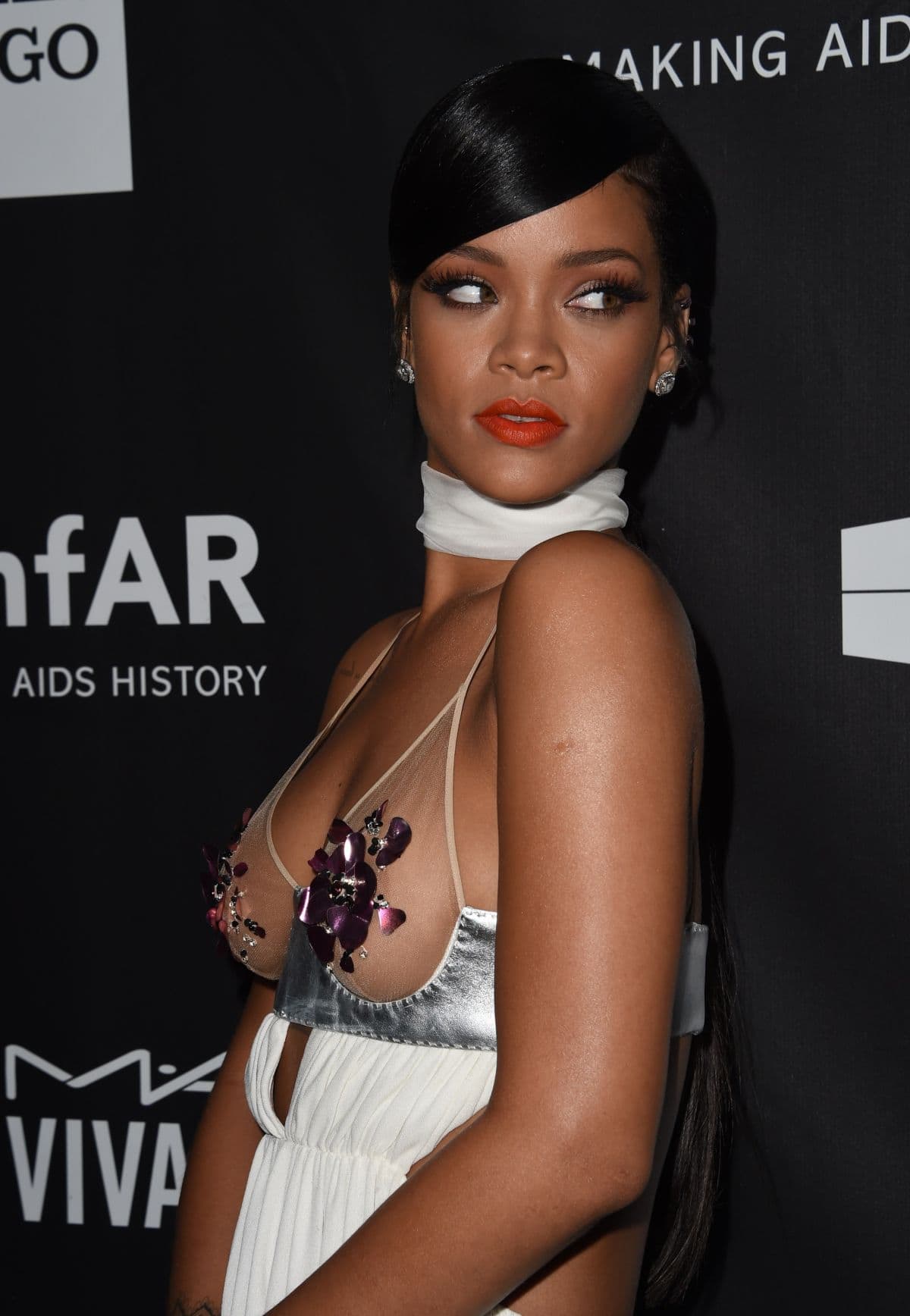 Pevačica se pojavila u haljini koju je dizajnirao Tom Ford, a koja otkriva mnogo toga – njen gornji deo gotovo je providan, samo su bradavice pokrivene laticama cveća i dijamantima.