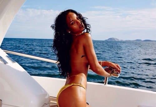 Rihanna trenutno boravi u Brazilu, gde odmara od svog prenatrpanog svakodnevnog rasporeda i brojnih obaveza. Zgodna Riri ni ovoga puta nije želala da u potpunosti nestane iz medija, već nam šalje zavodljive pozdrave sa luksuzne jahte locirane blizu Kopakabane u Riju, obučena u maleni bikini, ali i u toplesu.